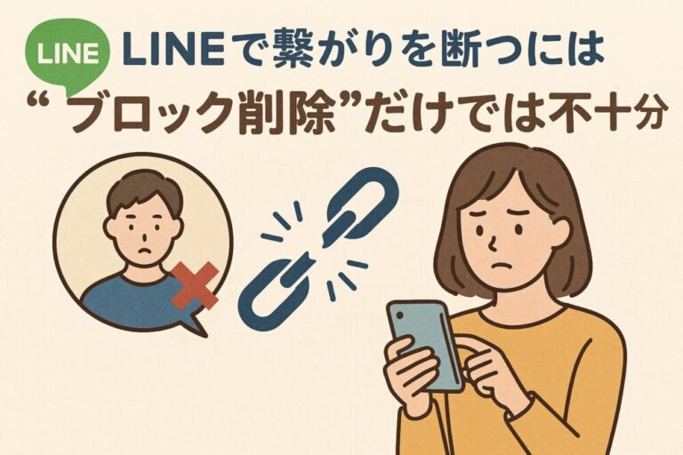 LINE上で関係を絶つには「ブロック削除」で十分だと思われがちですが、実際には相手の友だちリストに自分が残り続けるという仕様上の限界があります。完全に姿を消したいのであればアカウント削除という選択肢もありますが、それには大きなリスクも伴います。関係の断ち方には人それぞれの事情があると思いますので、何を優先するかを明確にし、自分に合った方法を選ぶことが大切です。この記事がその判断の助けになれば幸いです。